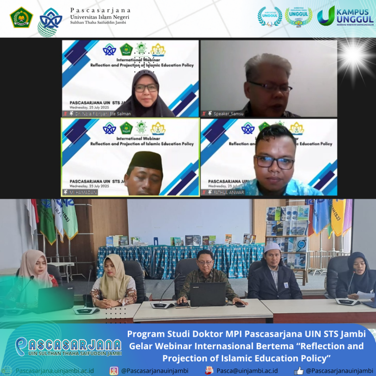 Jambi — Program Studi Doktor Manajemen Pendidikan Islam (MPI) Pascasarjana UIN STS Jambi sukses menggelar webinar internasional bertajuk “Reflection and Projection of Islamic Education Policy”. Acara ini