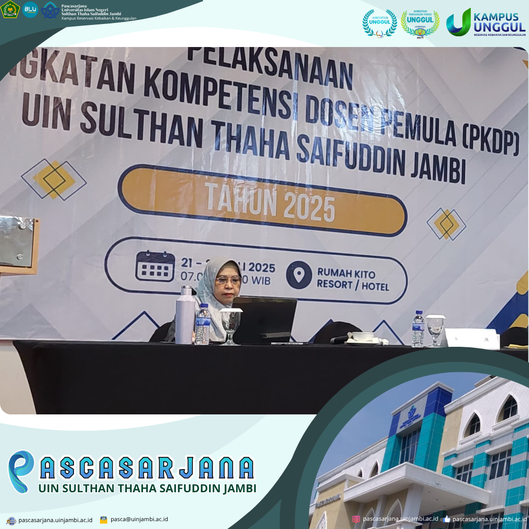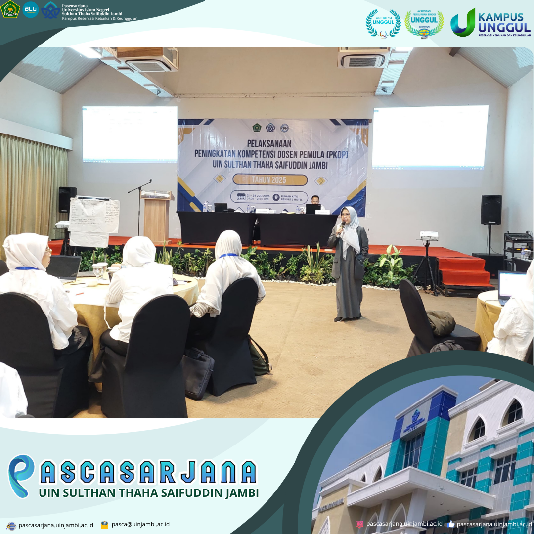 Jambi, 22 Juli 2025 – Direktur Pascasarjana Universitas Islam Negeri Sultan Thaha Saifuddin (UIN STS) Jambi, Prof. Dr. Risnita, M.Pd., tampil sebagai narasumber dalam kegiatan Peningkatan Kompetensi Dosen Pemula (PKDP) yang diselenggarakan oleh UIN STS Jambi. Kegiatan ini merupakan bagian dari program strategis pengembangan kapasitas dosen baru di lingkungan perguruan tinggi keagamaan Islam negeri.