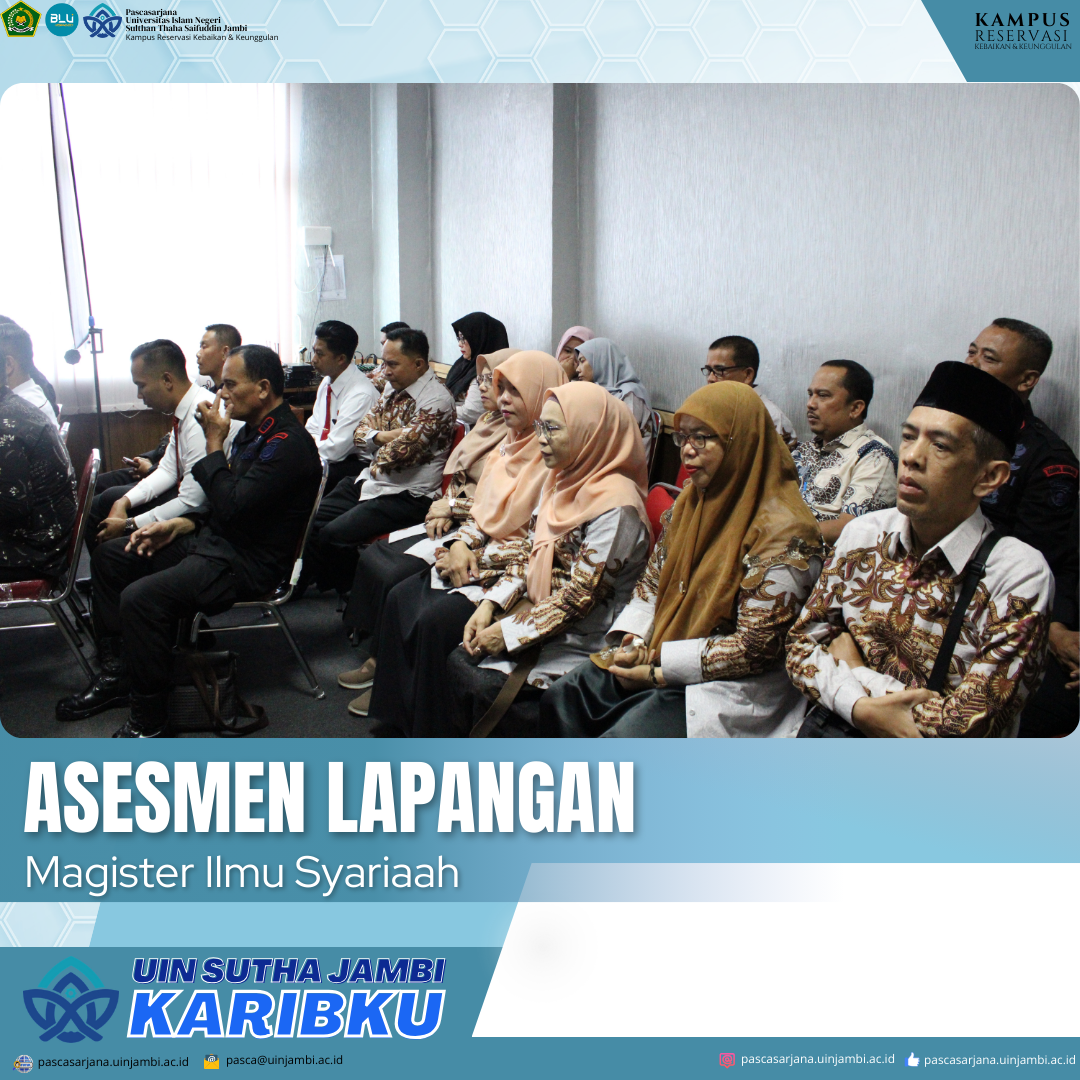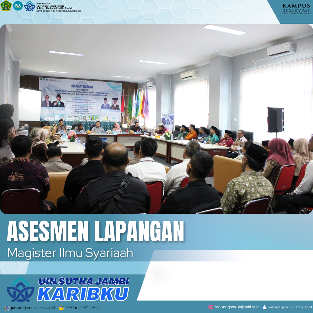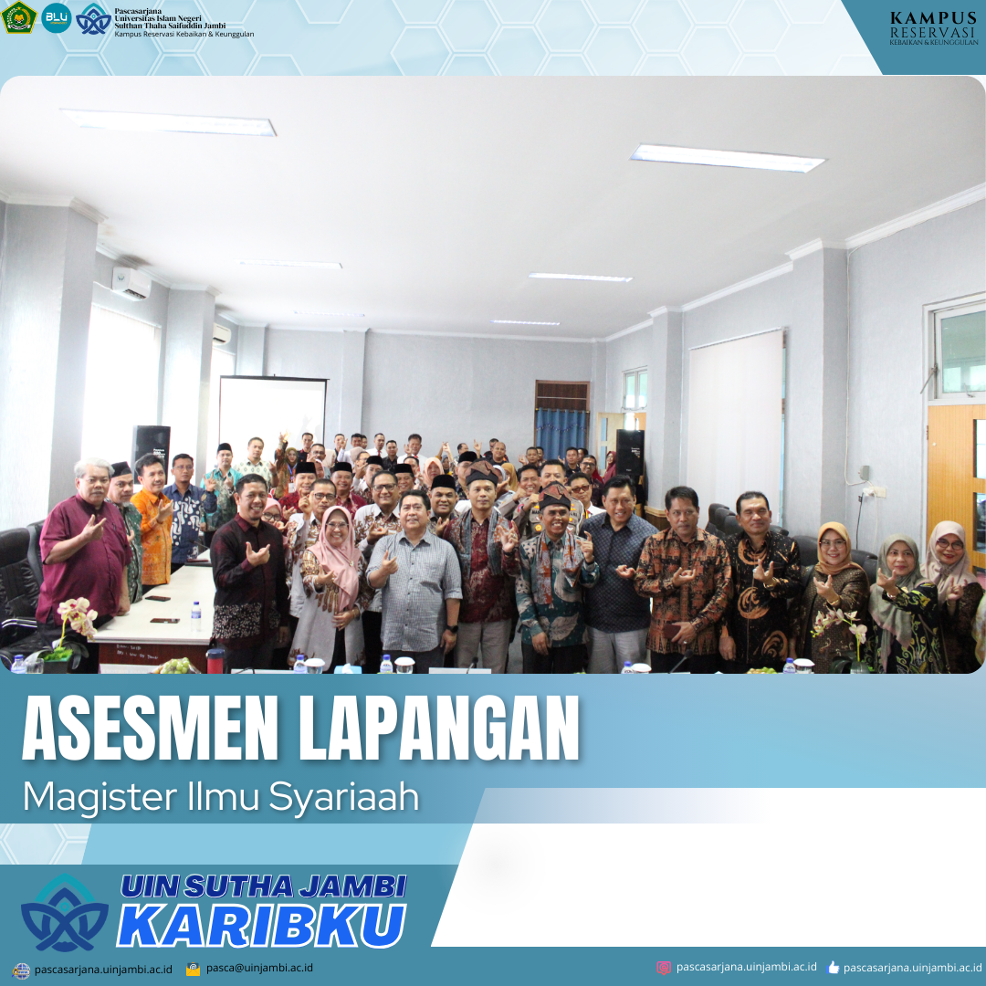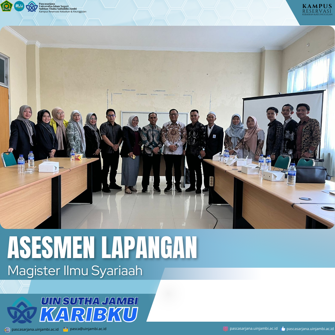 Jambi, 19 Oktober 2024 – Pascasarjana Universitas Islam Negeri (UIN) Sulthan Thaha Saifuddin Jambi menggelar Assessment Lapangan Program Studi Magister Ilmu Syariah pada Sabtu, 19 Oktober 2024. Acara tersebut dilangsungkan di Ruang Sidang Promosi Doktor, Lantai 2 Gedung Pascasarjana UIN STS Jambi.Assessment ini bertujuan untuk mengevaluasi Program Studi Magister Ilmu Syariah berdasarkan Surat Tugas Nomor 1255/BAN-PT/SPT-AK/A/2024 yang dikeluarkan oleh Badan Akreditasi Nasional Perguruan Tinggi (BAN-PT). Kegiatan ini dihadiri oleh dua asesor, yaitu: