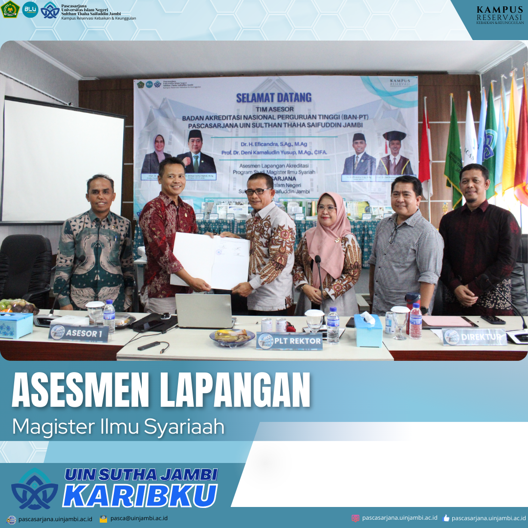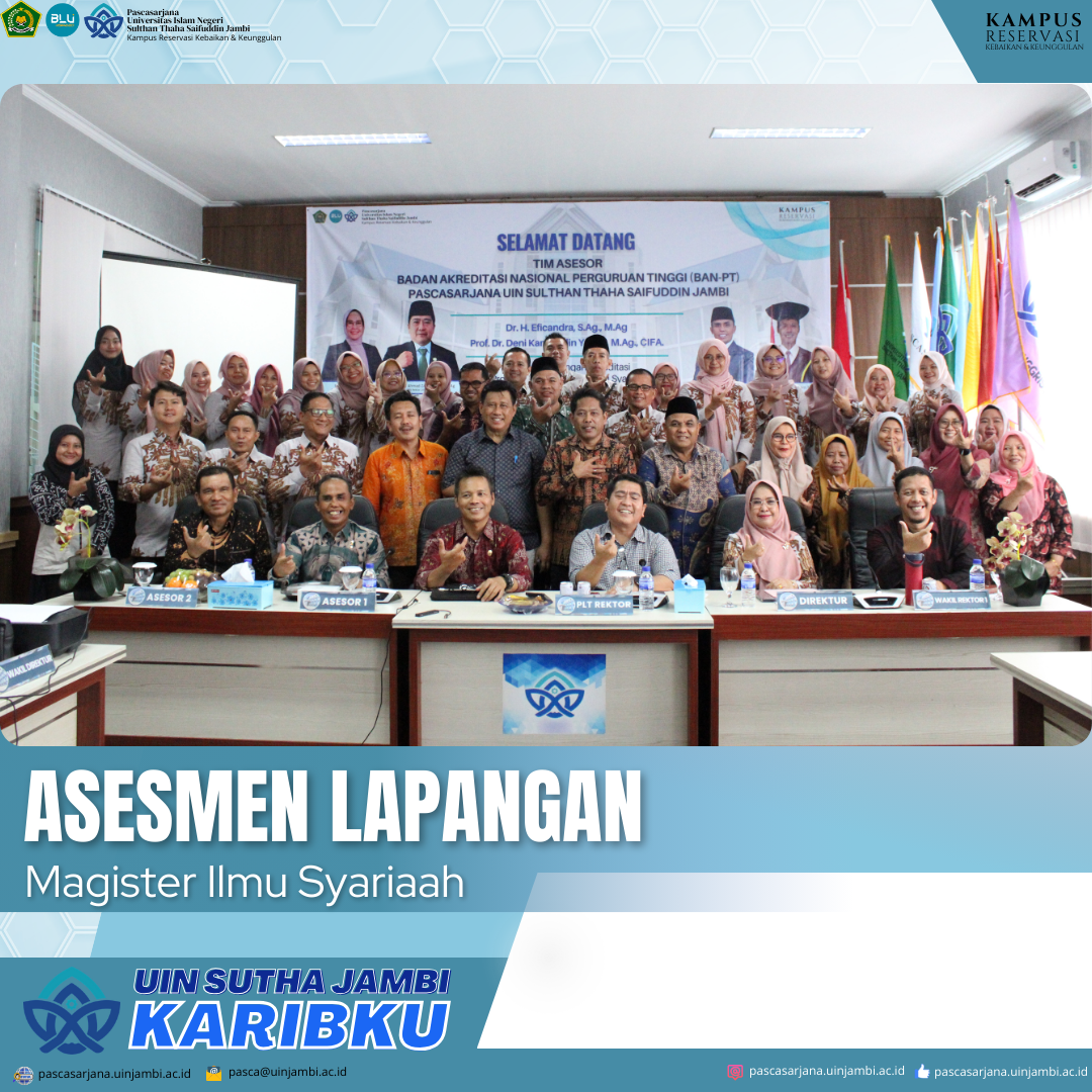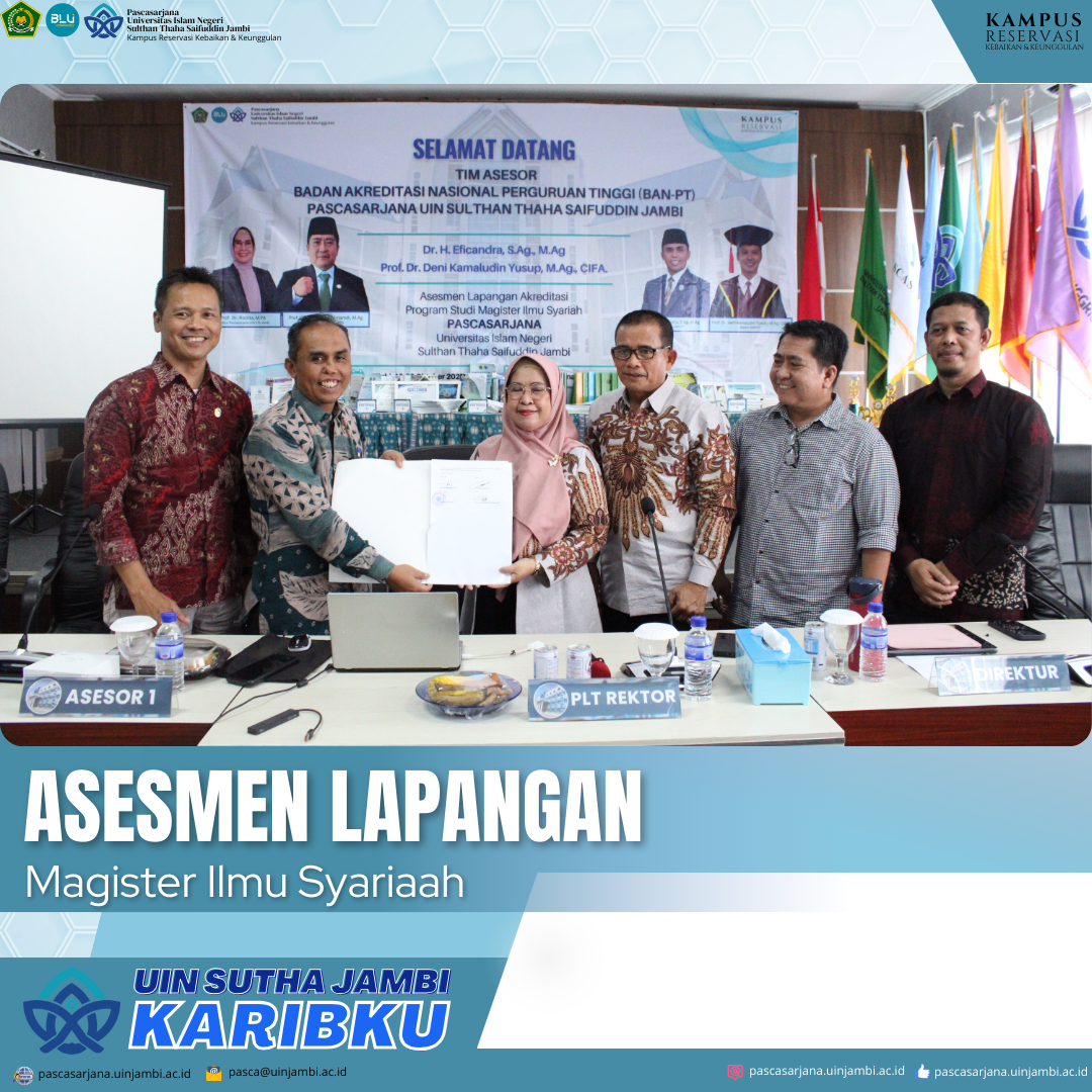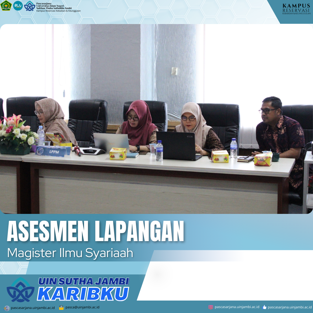 Jambi, 19 Oktober 2024 – Pascasarjana Universitas Islam Negeri (UIN) Sulthan Thaha Saifuddin Jambi menggelar Assessment Lapangan Program Studi Magister Ilmu Syariah pada Sabtu, 19 Oktober 2024. Acara tersebut dilangsungkan di Ruang Sidang Promosi Doktor, Lantai 2 Gedung Pascasarjana UIN STS Jambi.Assessment ini bertujuan untuk mengevaluasi Program Studi Magister Ilmu Syariah berdasarkan Surat Tugas Nomor 1255/BAN-PT/SPT-AK/A/2024 yang dikeluarkan oleh Badan Akreditasi Nasional Perguruan Tinggi (BAN-PT). Kegiatan ini dihadiri oleh dua asesor, yaitu: