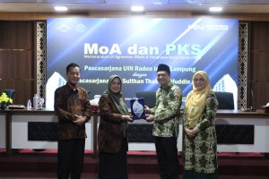 Lebih lanjut, Prof. Ruslan menegaskan pentingnya kolaborasi yang produktif, terutama dalam penguatan mutu akademik melalui prosiding internasional, publikasi di jurnal bereputasi, dan jurnal terindeks Scopus. Ia juga menyoroti capaian Pascasarjana UIN Lampung yang kini memiliki 12 program studi, di antaranya 5 telah meraih akreditasi unggul. “Harapan kami, setelah MoA ini ditandatangani, implementasinya benar-benar nyata dan memberikan manfaat bagi kedua belah pihak,” tegasnya.