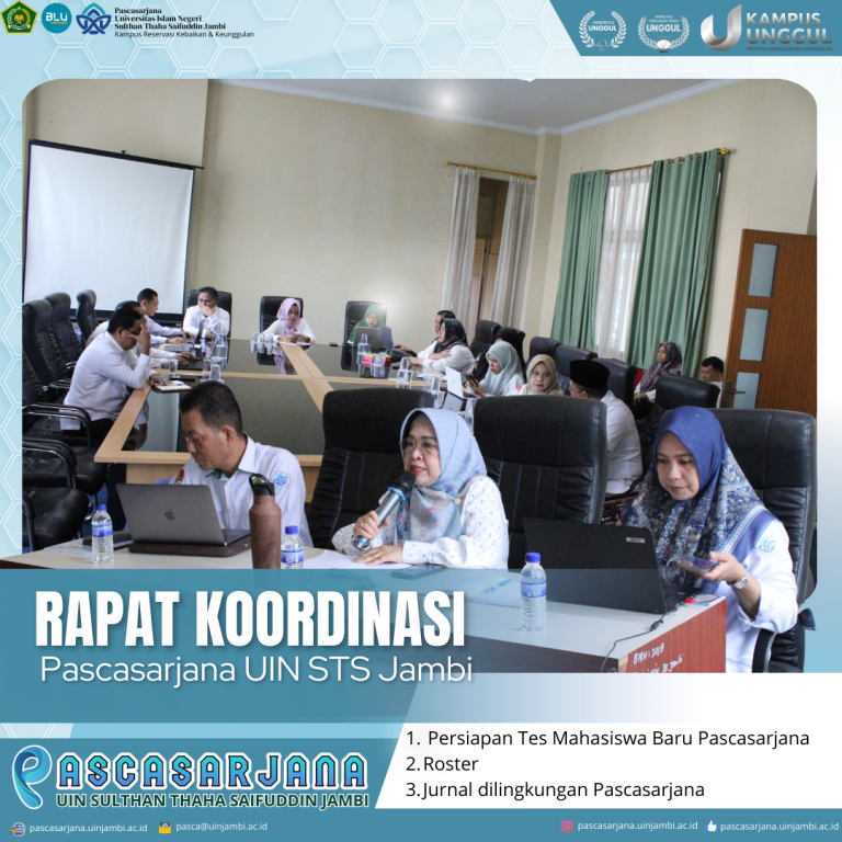 Jambi – Pascasarjana UIN Sulthan Thaha Saifuddin Jambi menyambut pelaksanaan asesmen lapangan Program Studi Doktor Ilmu Syariah yang dilaksanakan di Ruang Sidang Promosi Doktor, lantai II Gedung