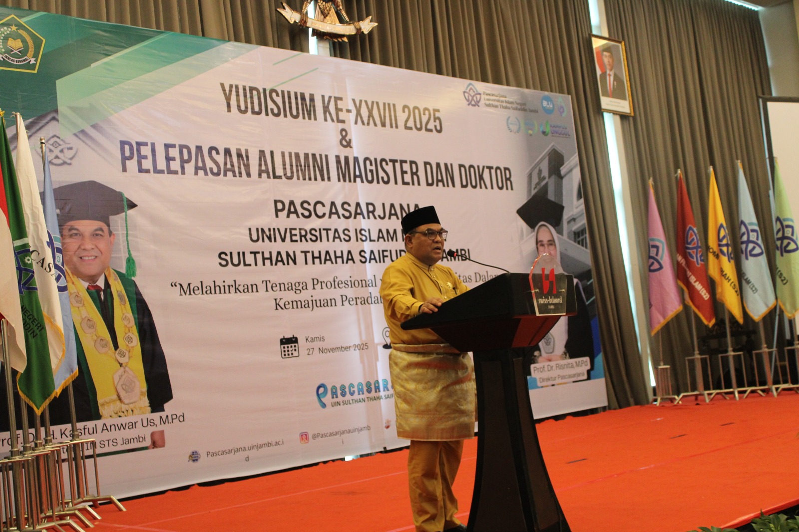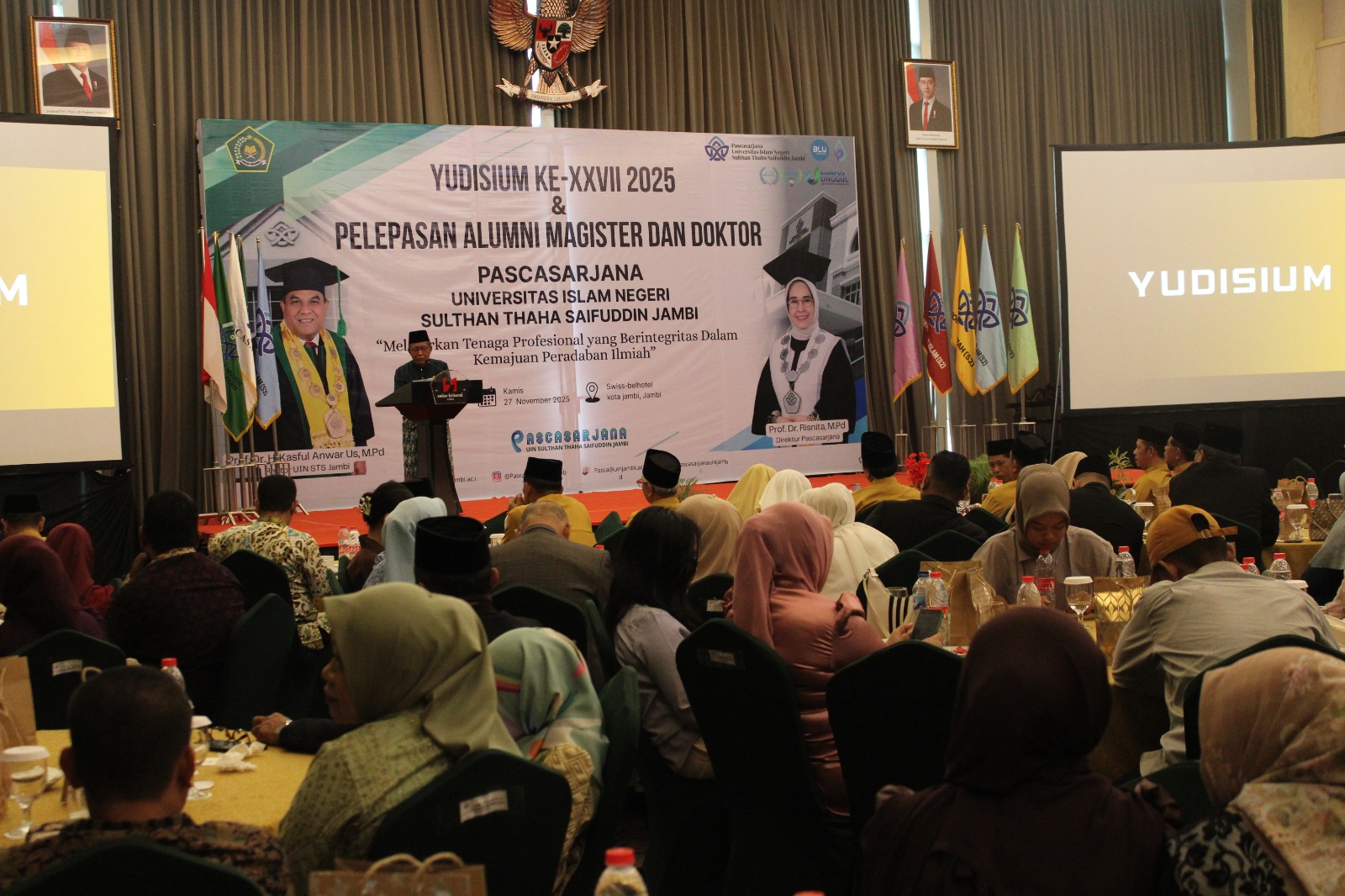 Jambi — Pascasarjana UIN Sulthan Thaha Saifuddin Jambi melaksanakan Yudisium Ke-27 pada Kamis, 27 November 2025, bertempat di Ballroom Swiss-Belhotel Jambi. Kegiatan akademik yang dilaksanakan dua kali dalam satu tahun ini diikuti oleh 128 peserta dari berbagai program Magister dan Doktor.