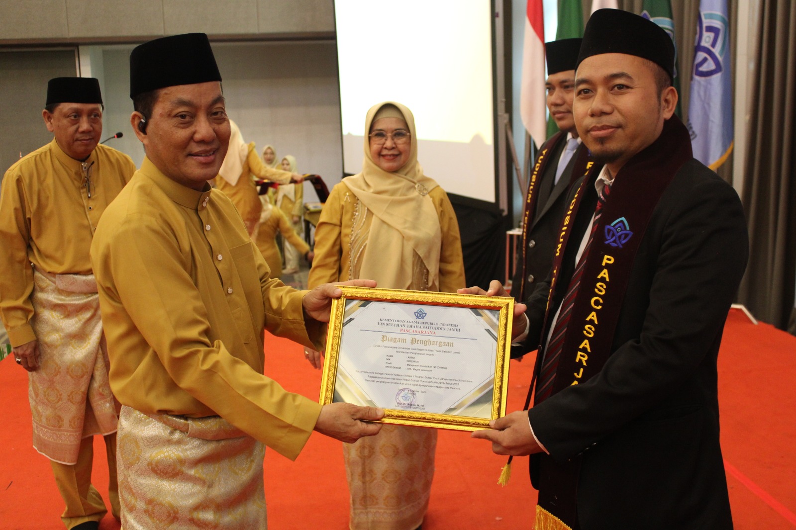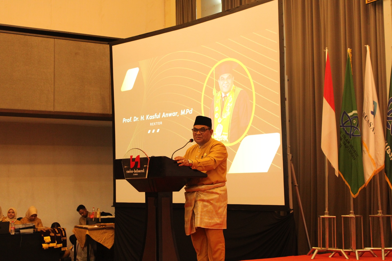 Rektor UIN STS Jambi, Prof. Dr. Kasful Anwar Us, M.Pd, menyampaikan ucapan selamat sekaligus pesan mendalam kepada para lulusan.