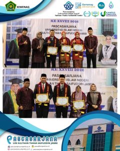 “Sebagai lulusan magister dan doktor Pascasarjana UIN STS Jambi, saudara diharapkan mampu menjadi agent of change, knowledge creator, sekaligus penjaga nilai-nilai moral di tengah masyarakat,” tegasnya.